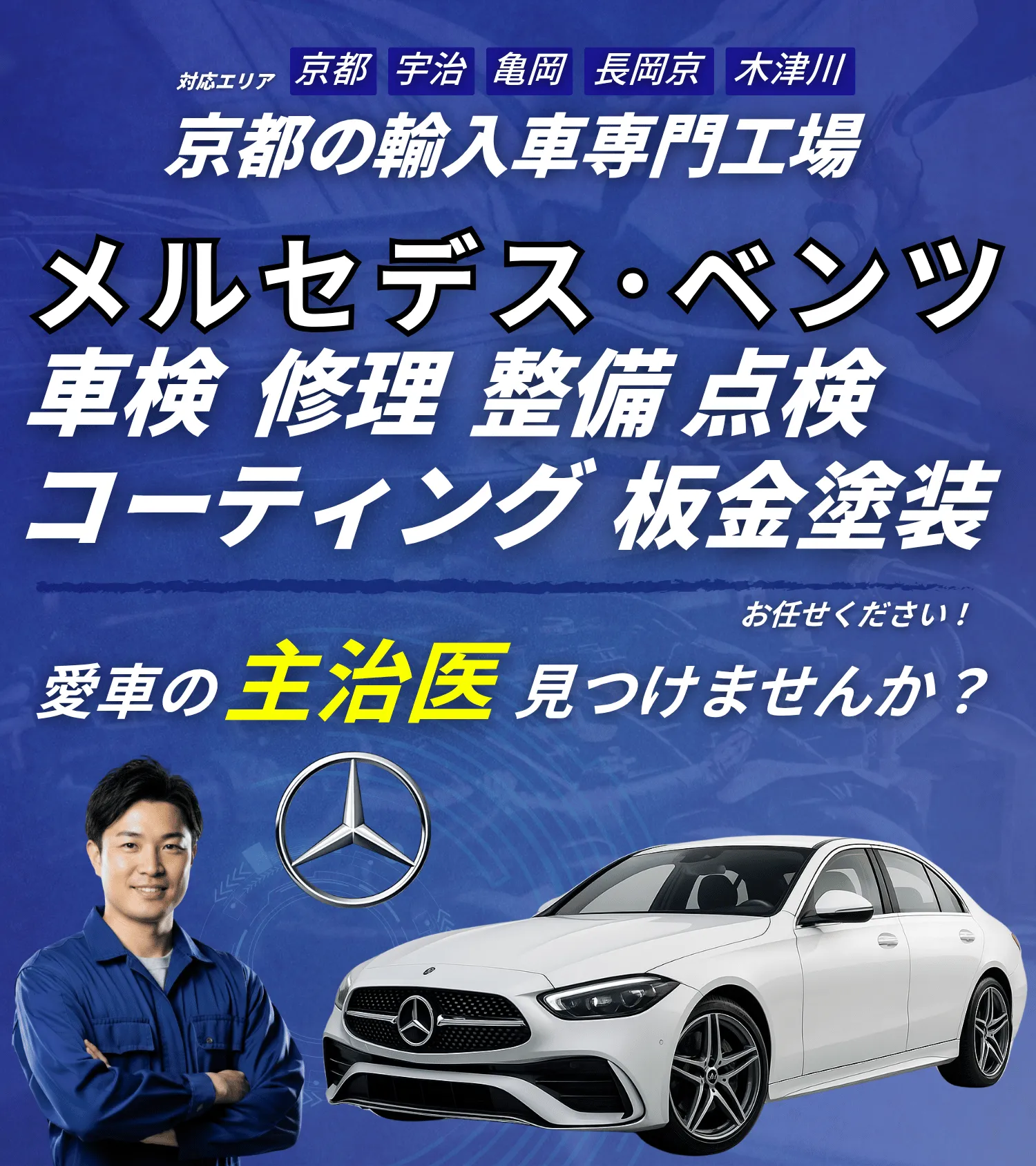 輸入車専任の整備士と専用テスター。鈑金・車検・保険までワンストップ。
